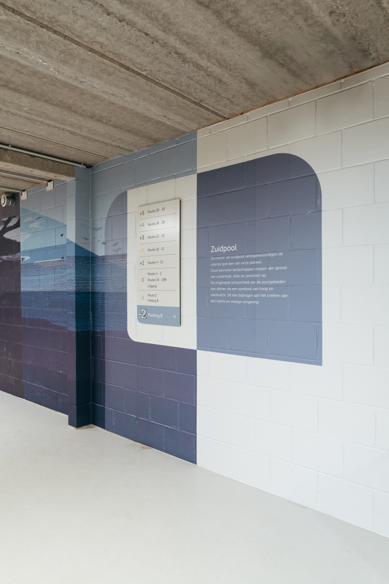 De vormgeving van de bewegwijzering is piekfijn uitgekiend. Alle panelen, pictogrammen en borden kregen dezelfde karakteristieke lay-out met een kleine afgeronde zijde. Zo leggen we enerzijds de link met het logo van AZ Monica en symboliseren we anderzijds het zachte aspect van de zorg. Als aanvulling op de algemene bewegwijzering, die we een neutrale tint hebben gegeven, hebben we per verdieping gewerkt met specifieke kleuraccenten op basis van de opdeling in verschillende biomen. Daarnaast waren er nog enkele andere aandachtspunten. Zo is het gros van de panelen uitgevoerd in aluminium in functie van de algemene duurzaamheid en zijn de folies op de glazen wanden toegepast in drie verschillende gradaties van openheid om waar nodig enige discretie te garanderen. Toegankelijkheid was eveneens een belangrijke focus. De kamernummers zijn bijvoorbeeld ook voorzien in ‘tactile’ en braille. Daarmee anticiperen we alvast op mogelijke toekomstige verplichtingen in dit verband.